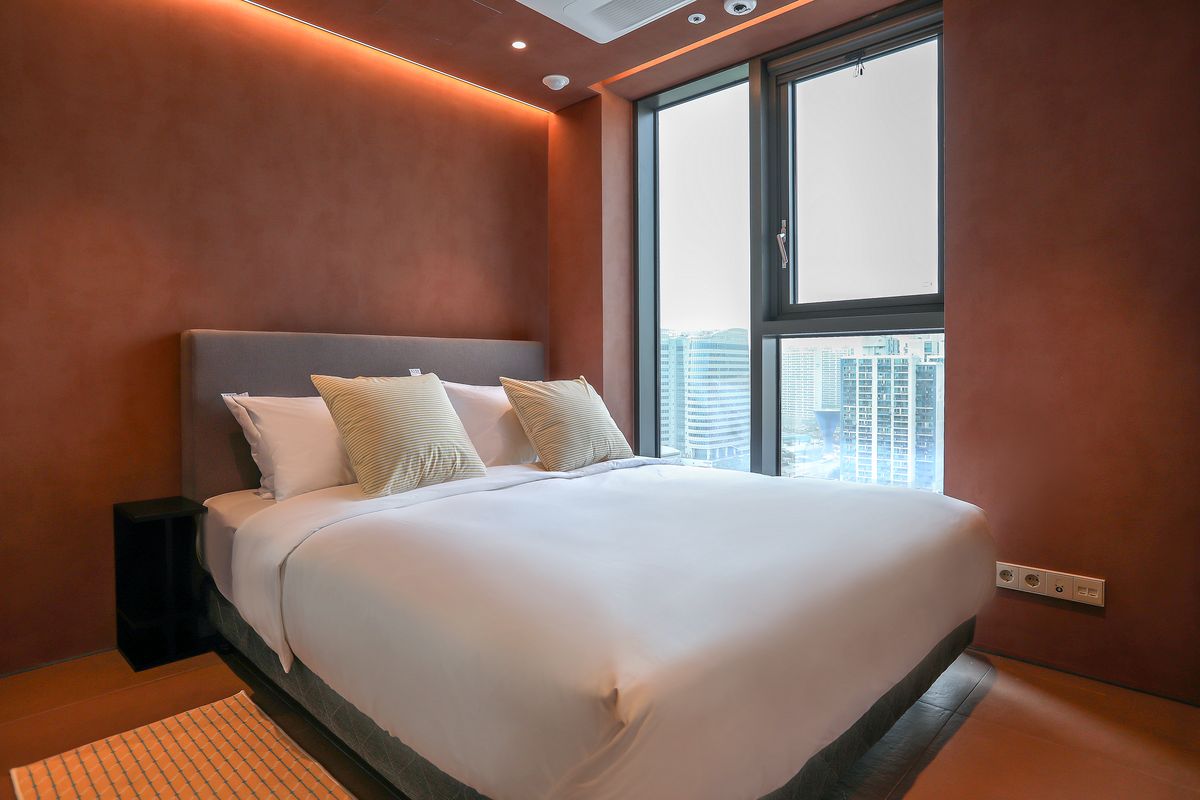 iF Design Award-winning serviced residence. Fully equipped for extended stays, 5 minutes from Garak Market Station.